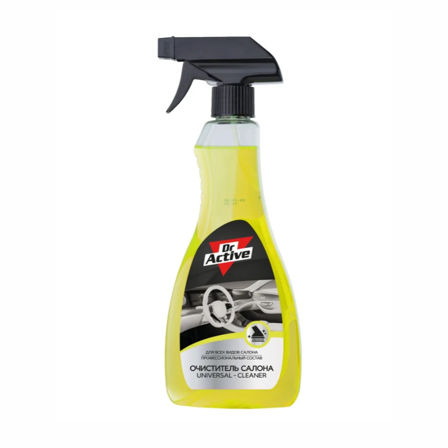 Универсальное средство для очистки салона Sintec Dr. Active Universal cleaner, 500 мл - средство для очистки салона автомобиля от любых загрязнений. Идеально подходит для чистки ткани, велюра, искусственной и натуральной кожи, пластика. Легко справляется с жирными пятнами. Обновляет цвета обивки. Не содержит хлора, не повреждает волокон ткани. Устраняет неприятные запахи.