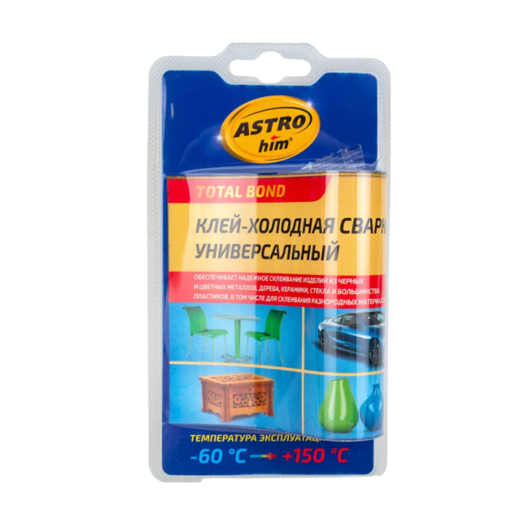 Универсальная холодная сварка ASTROhim 55 г, блистер АC-9317 предназначена для надежного склеивания деталей из черных и цветных металлов, дерева, керамики, стекла и большинства пластиков