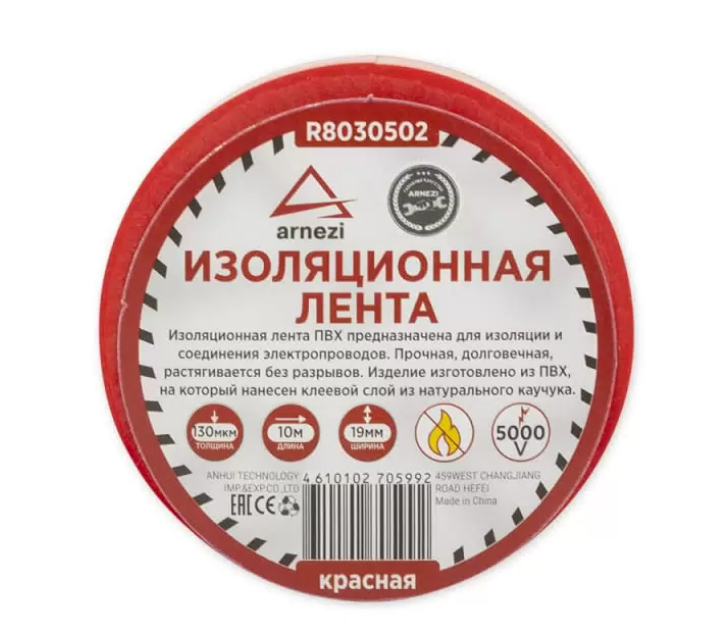 Изолента ПВХ 19 мм x10 м толщина 130 мик, красная ARNEZI R8030502