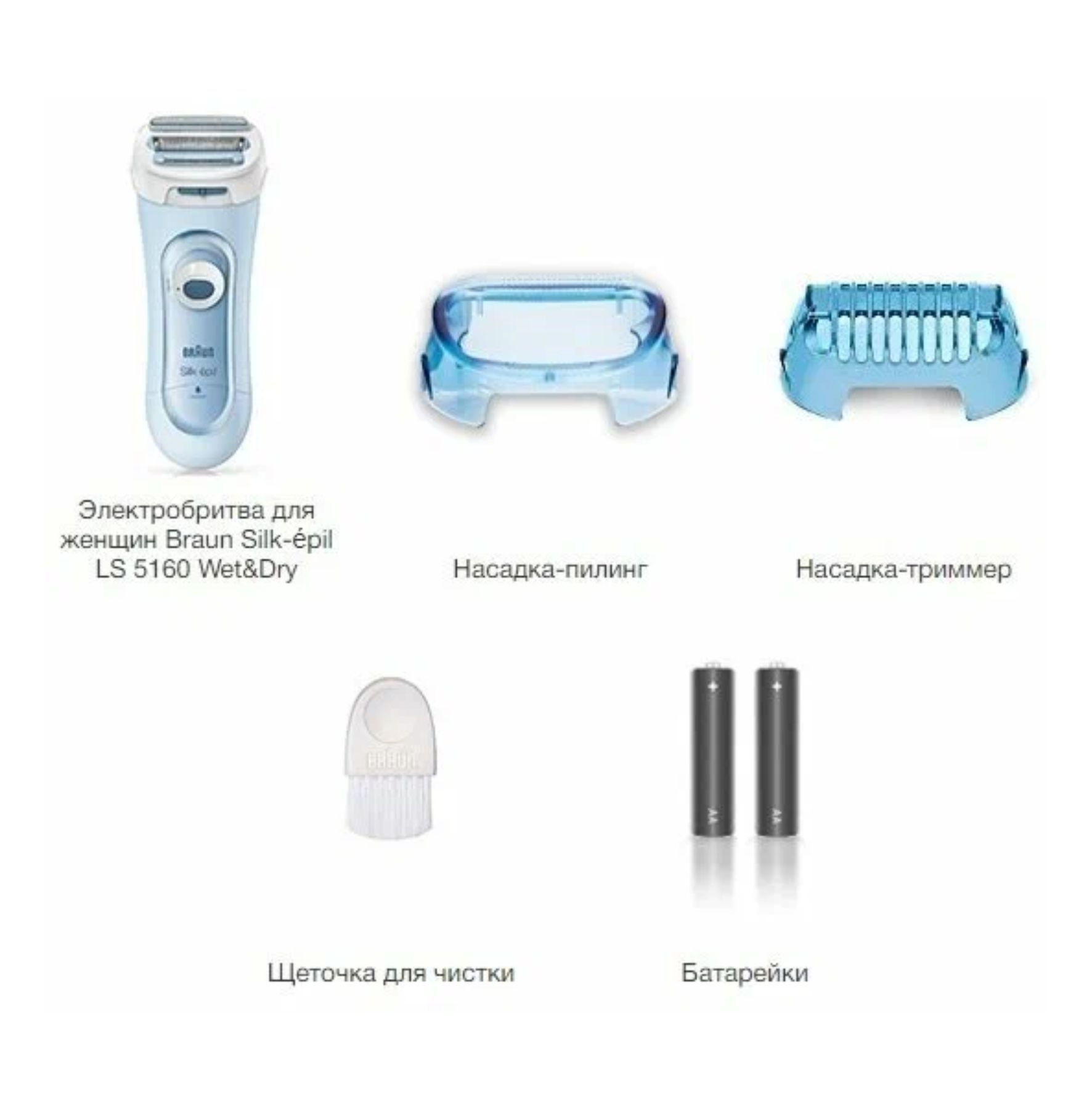 электробритва для женщин, насадка для пилинга, насадка-триммер, щеточка для чистки, батарейка АА - 2 шт