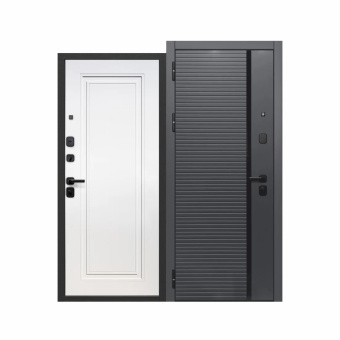 Внешнее покрытие: МДФ панель 8 мм Сатин Графит с вставкой из нержавеющей стали, атмосферостойкое порошково-полимерное «Букле Графит»