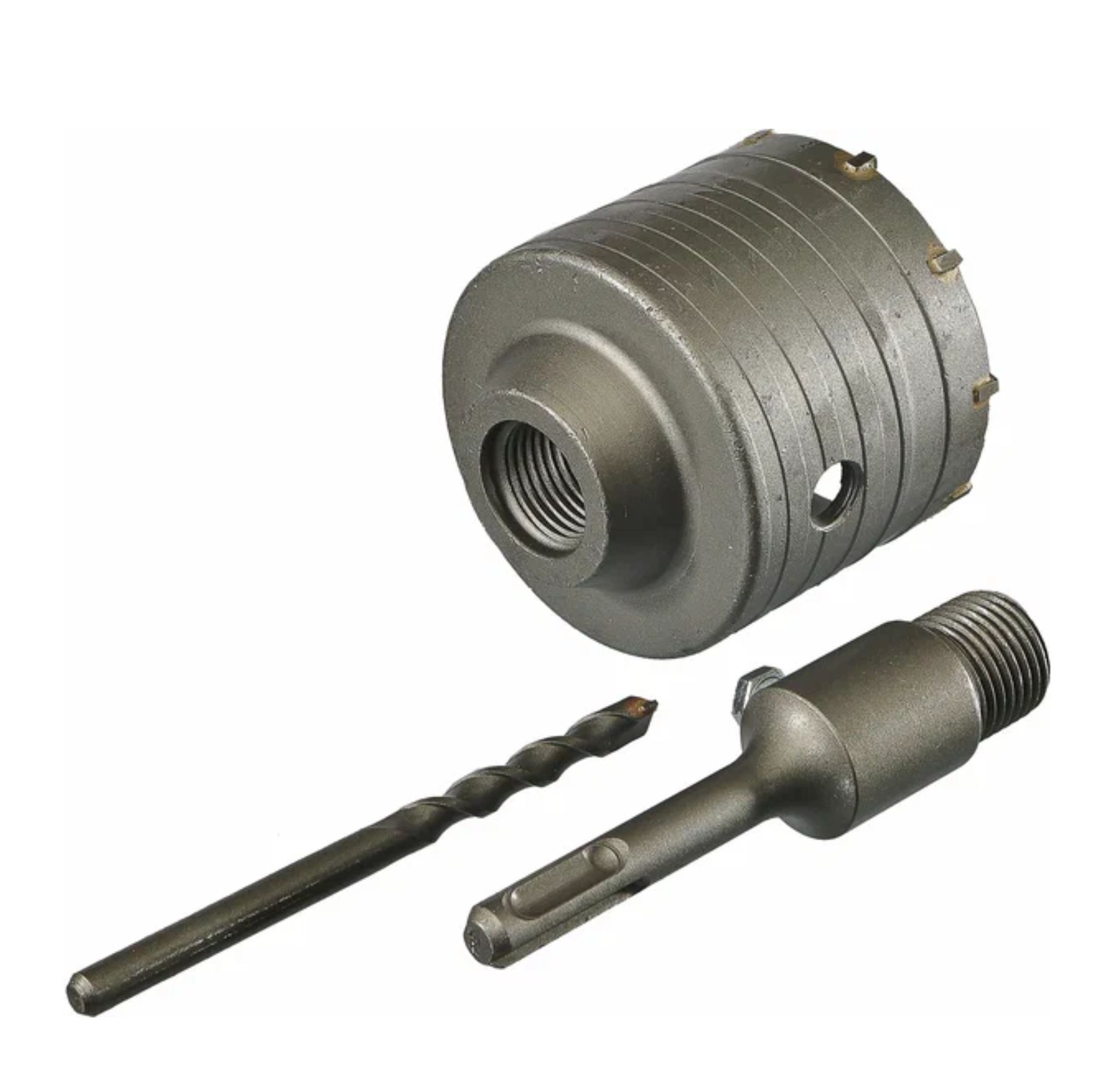 Коронка SDS-plus Sturm 9018-SDS-HD73 поставляется в комплекте с державкой и центрирующим сверлом. Зубья изготовлены из высококачественного карбид-вольфрама и имеют повышенную износостойкость. Центрирующее сверло имеет твердость 50-52 HRC, что увеличивает скорость и качество работы. Фиксирующий винт класса прочности 8.8 обеспечивает надежную фиксацию сверла.