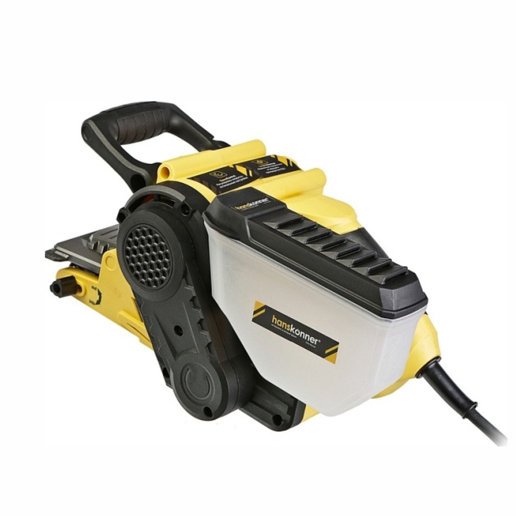 Резиновый сетевой кабель длинной 4 м даёт возможность работать без удлинителей, а также отличается стойкостью к низким температурам.