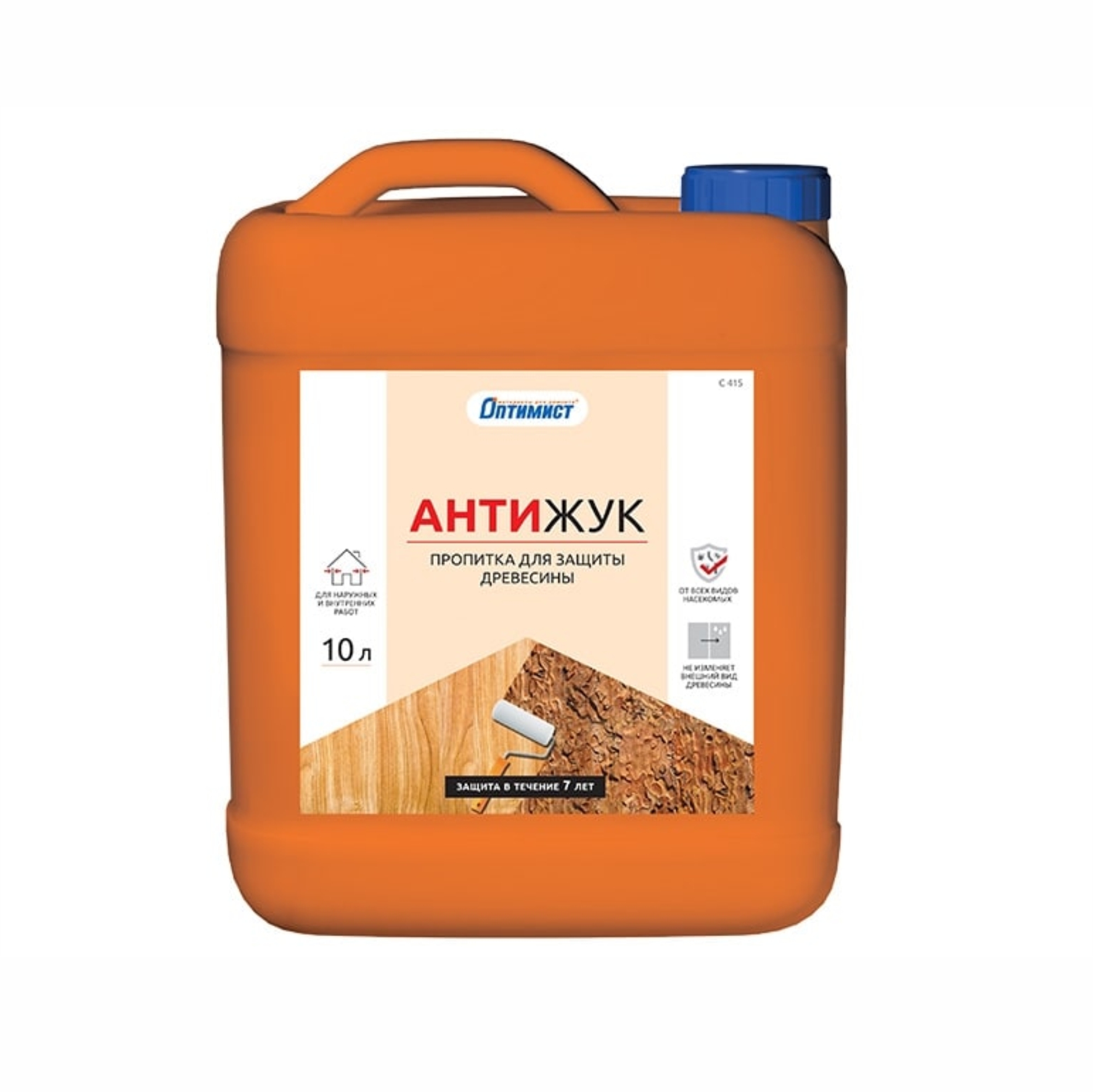 Пропитка Оптимист Антижук для защиты древесины С415 применяется для обработки лесо- и пиломатериалов (брусьев, стропил, полов и других конструкций из древесины) с целью защиты от всех видов насекомых.
