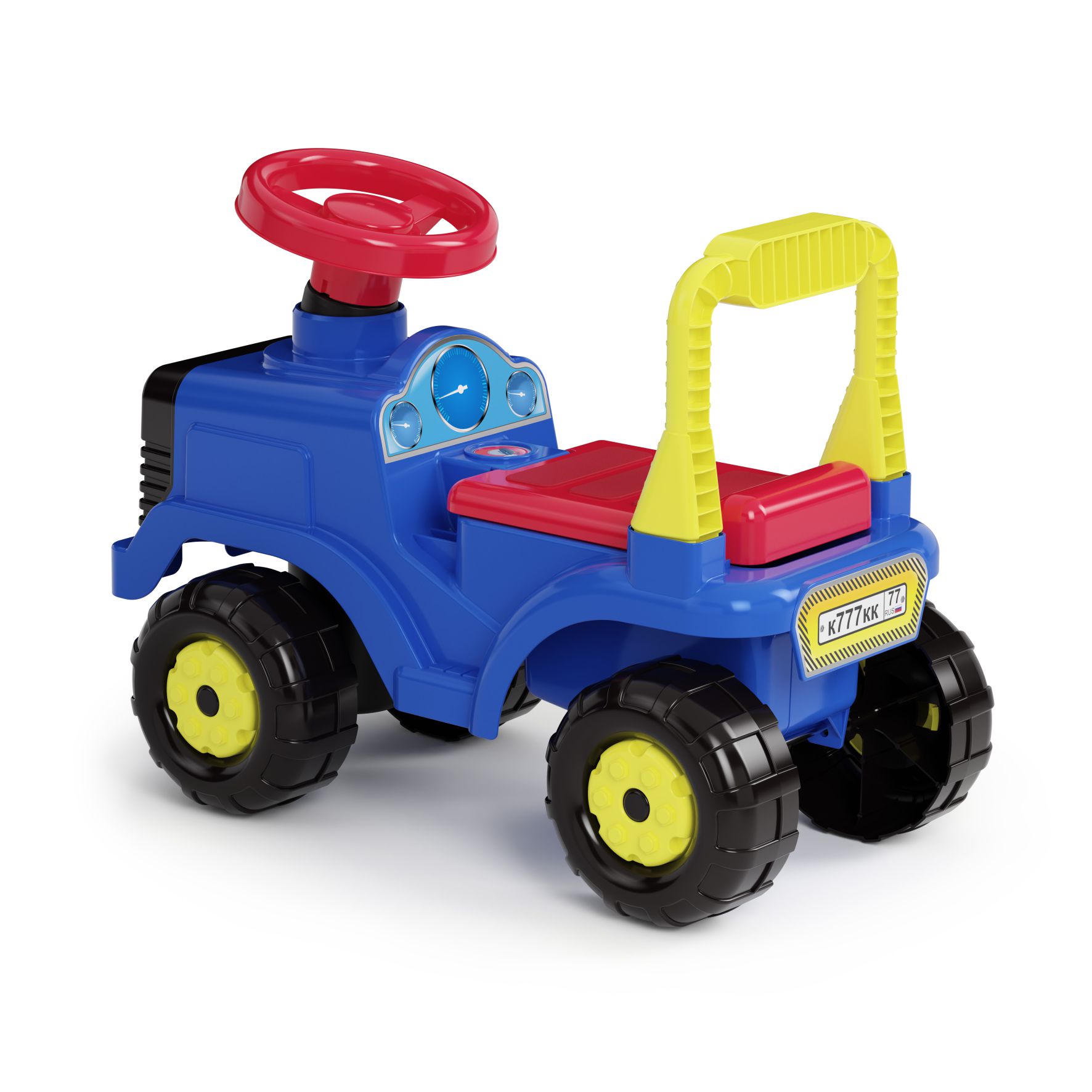 Изделие выполнено из высококачественного и безопасного пластика!Уникальность данной машинки в том, что она еще является каталкой. Ребенок с легкостью сможет сесть на удобное сиденье автомобиля и управлять им лишь отталкиваясь ножками. В целях безопасности машинка оборудована рулем, за который малыш сможет держаться во время катания. Рельефная поверхность сиденья не даст ребенку соскользнуть и упасть. Благодаря удобной ручке на спинке сиденья, родители смогут подталкивать и направлять машинку. Изделие легко промывается под проточной водой и не выцветает на солнце. Машинка будет стимулировать ребенка к активным движениям и развитию. В процессе игры развивается общая моторика и умение управлять своим телом.