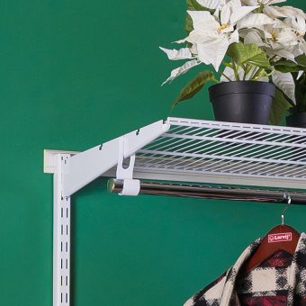 Разместите перекладину горизонтально на универсальные крючки, подвесные кронштейны или держатели на нужном расстоянии.