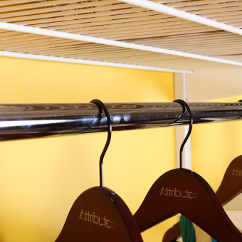 Металлическая перекладина в цвете хром для расположения вешалок. Для полноценной установки перекладины используются крючки, держатели или кронштейны для перекладины, торцевые заглушки, а для совмещения перекладин в одну - соединитель. Перекладина вмещает до 28 вешалок в зависимости от типа одежды и модели вешалок.