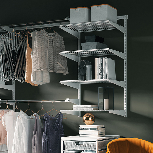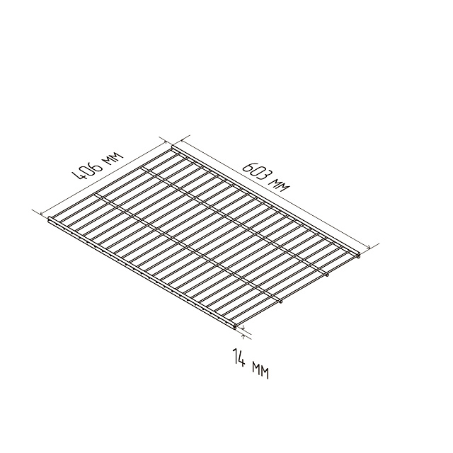 Белая металлическая проволочная полка. Базовые полки подходят для хранения одежды в сложенном виде, обуви, аксессуаров, коробок, органайзеров и других предметов. Размер 603х14х406. Максимальная нагрузка 20 кг.