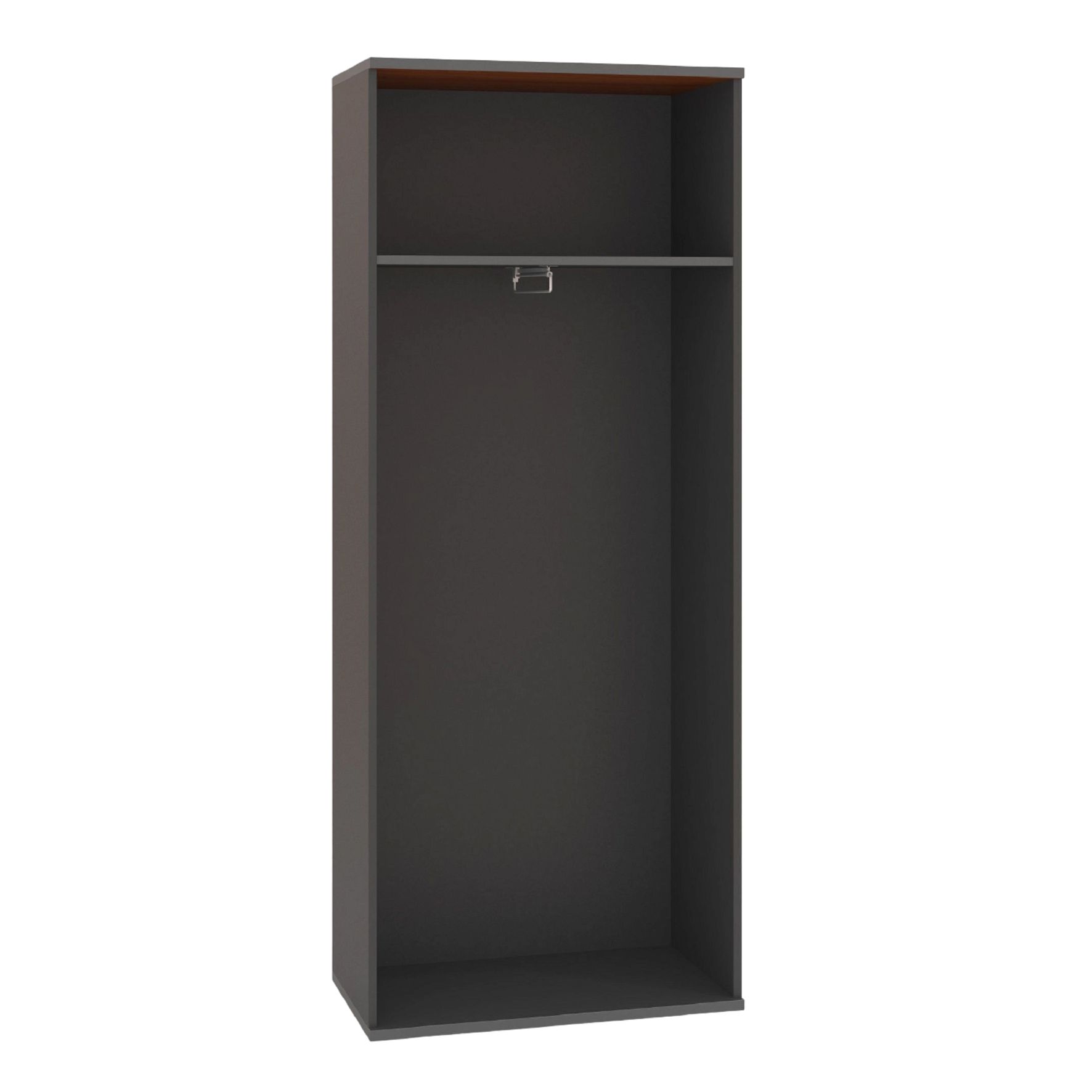Двухдверный распашной шкаф для одежды не займет много места. Шкаф гармонично сочетается с другими изделиями данной коллекции, создавая единую стилистическую композицию, или может использоваться как самостоятельный элемент интерьера. Внутри шкафа предусмотрены выдвижная штанга для одежды на вешалках и одна вместительная полка для хранения любых вещей. Чтобы адаптировать внутреннее пространство шкафа к вашим потребностям, установите в нем дополнительные полки.