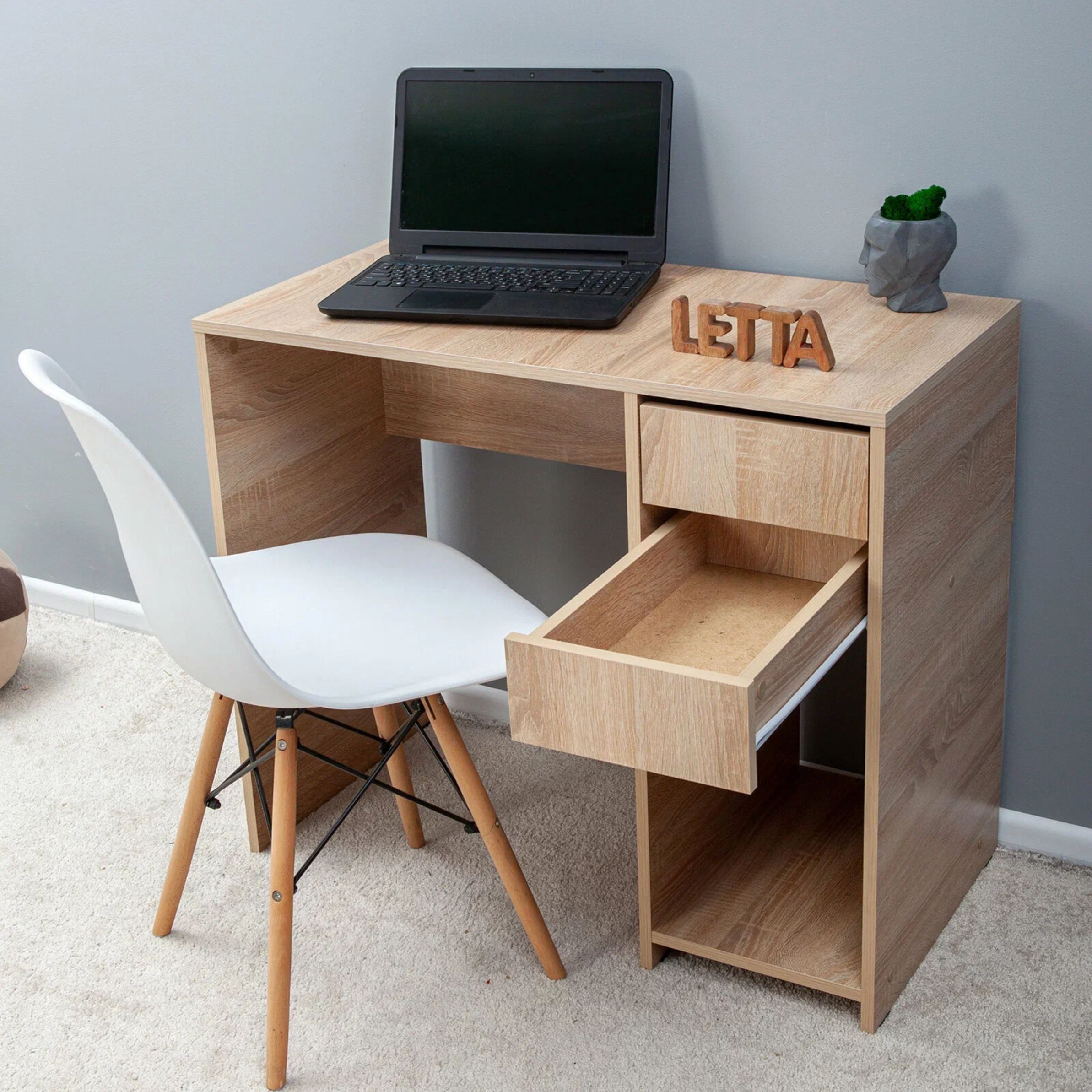 Письменный стол с ящиками можно использовать как компьютерный стол в офисе, рабочем кабинете, гостиной или детской. Стол ПК можно применить как рабочий стол для школьника, стол для ноутбука, для настольных игр ли для швейной машинки. Анатомически правильная конструкция стола поможет сохранить ровную осанку вам или вашему ребенку.