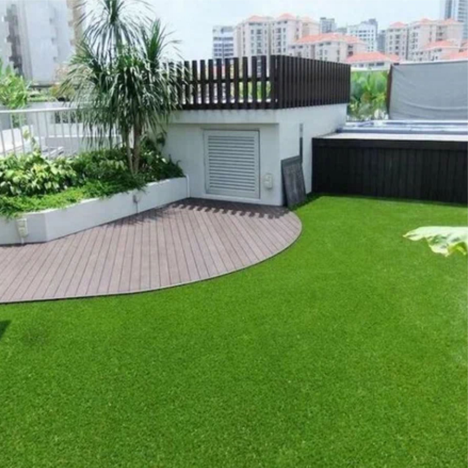 Искусственная трава используется для обустройства в ландшафтном дизайне: постройки аллей, детских площадок, декорирования крыш, лужаек и фасадов зданий, а так же для обустройства спортивных площадок и территорий детских учреждений - детских садов и школ