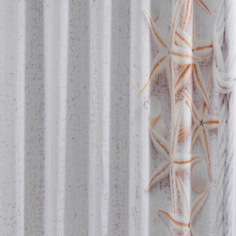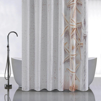 Красиво декорированная шторка в ванную и душевую комнаты с рисунком, защищающая пол и оборудование ванной комнаты от брызг воды, изготовлена из полиэстера и обладает выраженными водоотталкивающими свойствами. Занавеска для ванной имеет в верхней части 12 отверстий с пластиковыми люверсами. Декоративный рисунок нанесён на поверхность ткани при помощи фотопечати. Такие принты не боятся влаги и не смываются даже очень горячей водой. Водоотталкивающие шторы для ванной, пошитые из ткани плотностью 80 г/м2, не придётся дополнительно утяжелять — они расправятся под своим весом и не будут липнуть к телу принимающего душ человека.