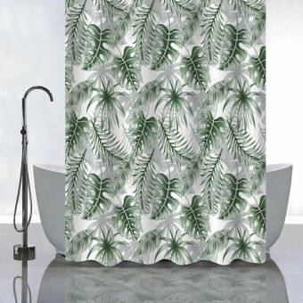 Красиво декорированная шторка в ванную и душевую комнаты с рисунком, защищающая пол и оборудование ванной комнаты от брызг воды, изготовлена из полиэстера и обладает выраженными водоотталкивающими свойствами. Занавеска для ванной имеет в верхней части 12 отверстий с пластиковыми люверсами. Декоративный рисунок нанесён на поверхность ткани при помощи фотопечати. Такие принты не боятся влаги и не смываются даже очень горячей водой. Водоотталкивающие шторы для ванной, пошитые из ткани плотностью 80 г/м2, не придётся дополнительно утяжелять — они расправятся под своим весом и не будут липнуть к телу принимающего душ человека.